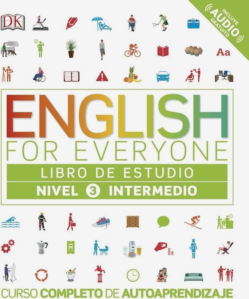 Todo lo que necesitas está incluido en English for Everyone: expresiones gramaticales, vocabulario y ejercicios. En el Libro de estudio del Nivel Intermedio 3 encontrarás vocabulario y expresiones de temas comunes además de un montón de ejercicios para aprender a presentarte a ti mismo y presentar a otros, contar historias y anécdotas o hablar sobre futuras posibilidades. Este nivel incluye además el aprendizaje de los tiempos verbales narrativos y el reported speech.